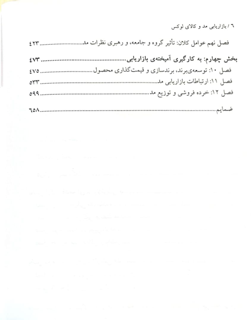 کتاب « بازاریابی مد و لوکس » با عنوان اصلی(Fashion & Luxury Marketing) نوشتهی مایکل سولومون و مونا امراد (Michael R Solomon؛ Mona Mrad) ترجمهی دکتر کامبیز حیدرزاده، محمد باغیانی در 696 صفحه ، قطع وزیری و جلد گالینگور در انتشارات نشر علم چاپ و منتشر شده است. در حال حاضر آخرین چاپ این کتاب در فروشگاههای فیزیکی و اینترنتی کتاب درخشش در دسترس میباشد که با افزودن آن به سبد خرید و تکمیل فرآیند سفارش، در کوتاهترین زمان ممکن به دست شما خواهد رسید.