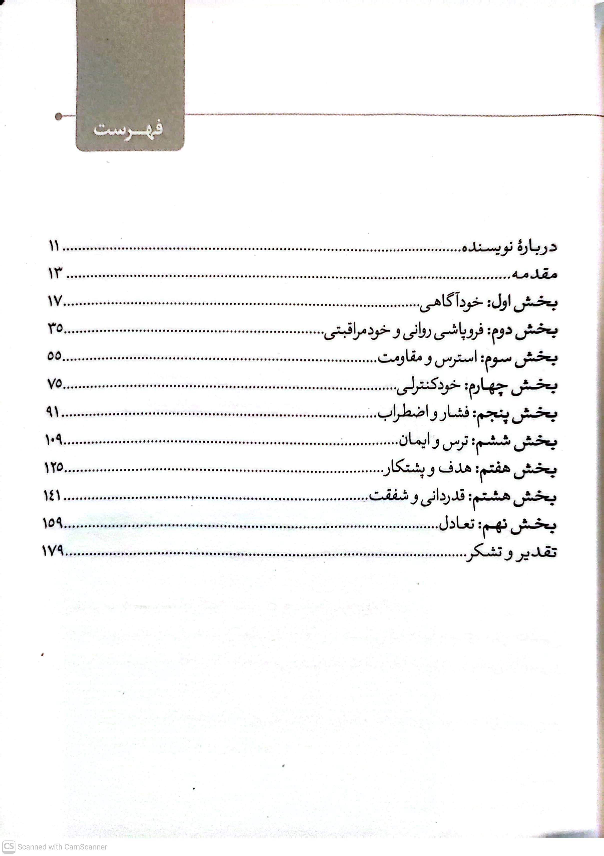 - ساختار آموزشی و الهام‌بخش: فصل‌های کتاب شامل موضوعاتی چون خودآگاهی، مراقبت از خود، تاب‌آوری، مدیریت اضطراب، غلبه بر ترس، یافتن هدف، و پرورش قدردانی و شفقت هستند.