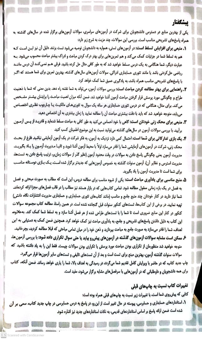 ۱. استانداردهای حسابداری و حسابرسی، پیوسته در حال تغییر است. از این رو، در پاسخ به درس حسابرسی در چاپ جدید کتاب، سعی بر آن شده است ضمن ارائه پاسخ بر اساس استانداردهای قدیمی، به نکات استانداردهای جدید نیز اشاره شود.