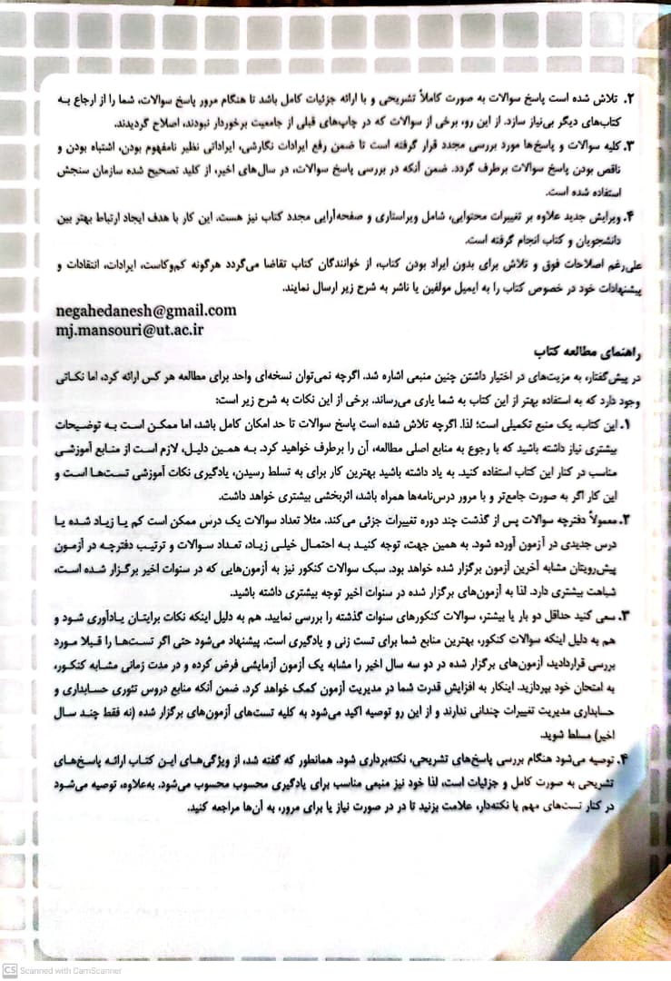 ۲. تلاش شده است پاسخ سوالات به صورت کاملاً تشریحی و با ارائه جزئیات کامل باشد تا هنگام مرور پاسخ سوالات، شما را از ارجاع به کتاب های دیگر بی نیاز سازد. از این رو، برخی از سوالات که در چاپ های قبلی از جامعیت برخوردار نبودند. اصلاح گردیدند.