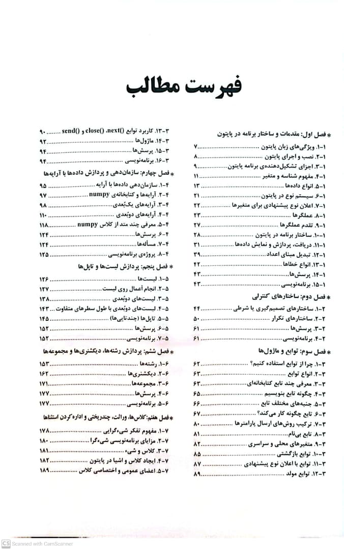 این کتاب شما را از مفاهیم ابتدایی مانند نصب پایتون و نوشتن اولین برنامه ("Hello World!") به آرامی و با بیانی بسیار شیوا همراهی میکند و قدمبهقدم به سمت مباحث پیچیدهتر مانند برنامهنویسی شیءگرا (OOP)، کار با پایگاههای داده، و حتی مباحث پیشرفتهتر میبرد. ساختار فصلبندی آن آنقدر منطقی و روان است که هیچگاه احساس سردرگمی نمیکنید.