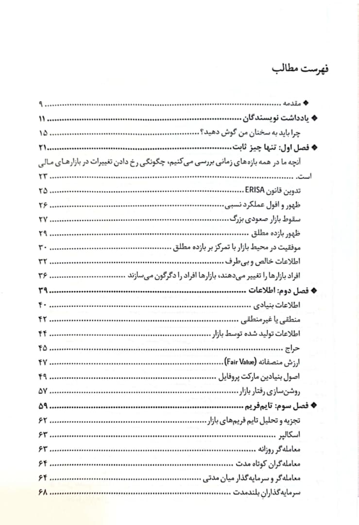روانشناسی معاملهگران: نویسندگان تأکید میکنند که پشت هر حرکت قیمتی، تصمیمهای انسانی و رفتار جمعی قرار دارد. بنابراین، تحلیل بازار بدون توجه به روانشناسی مشارکتکنندگان ناقص خواهد بود.