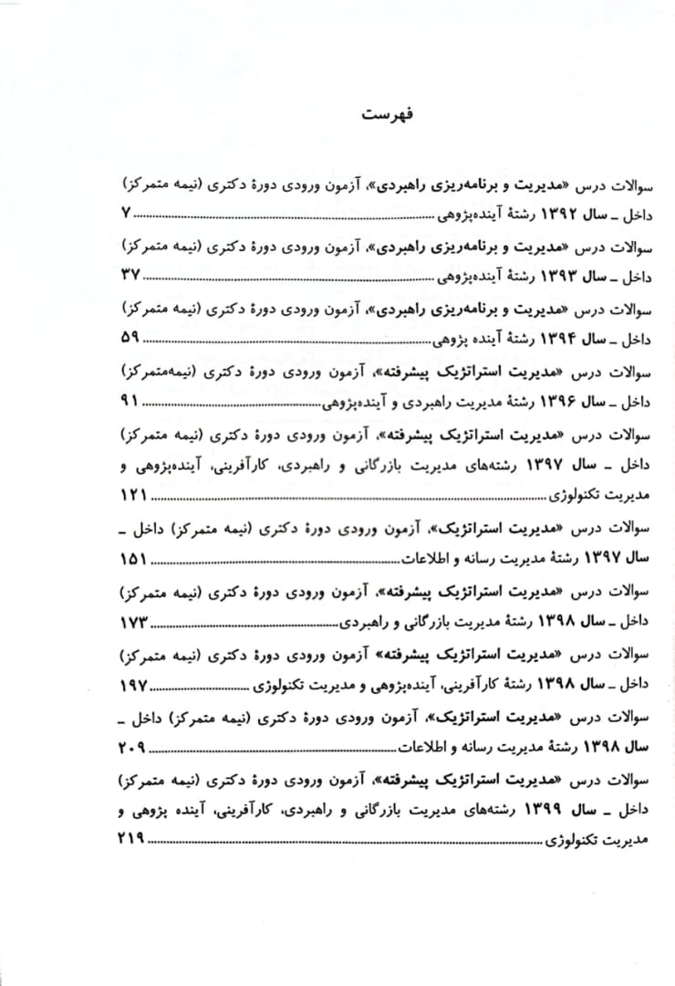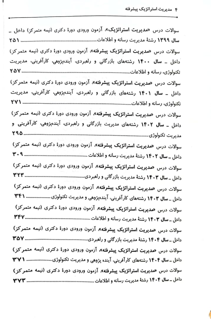 کتاب « مجموعه سوالات آزمون های ورودی دوره های دکتری (نیمه متمرکز) داخل؛ مدیریت استراتژیک پیشرفته» {1392-1404؛ همراه با پاسخ کاملا تشریحی}