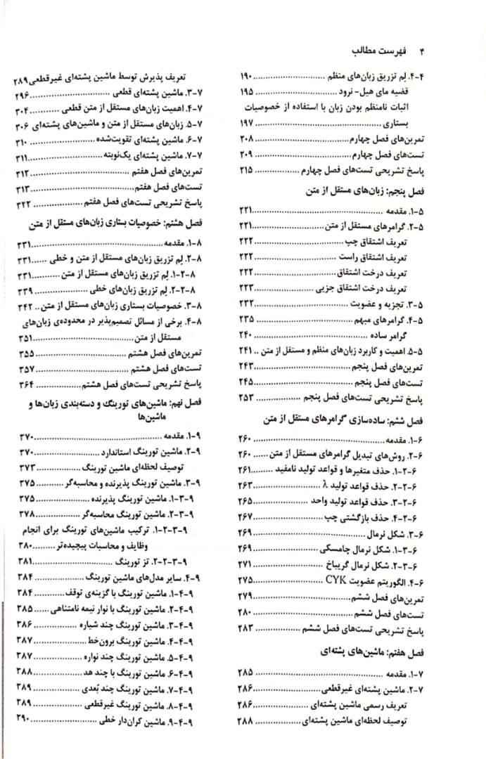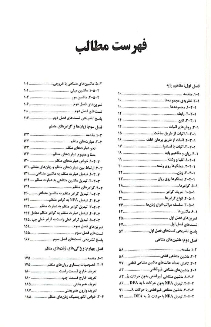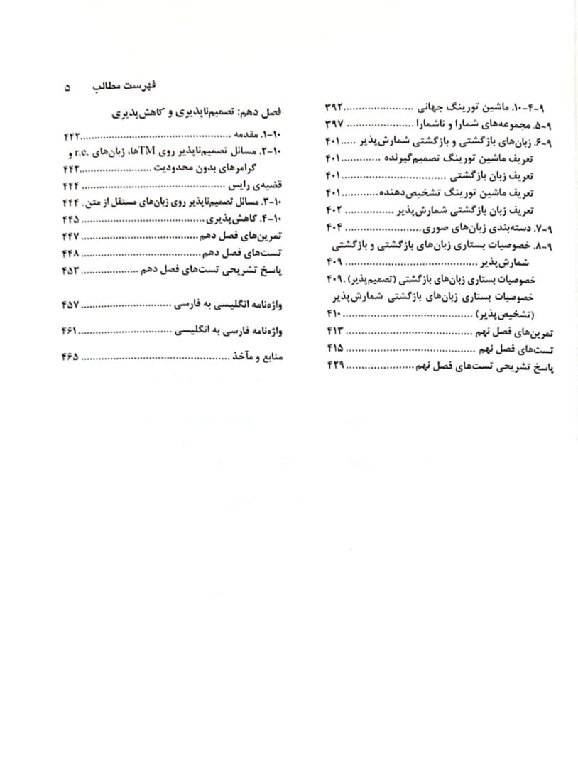 *ساختار آموزشی کامل: کتاب شامل ۱۰ فصل است که از مفاهیم پایه شروع شده و تا مباحث پیشرفته مانند ماشین‌های تورینگ و تصمیم‌ناپذیری ادامه می‌یابد.